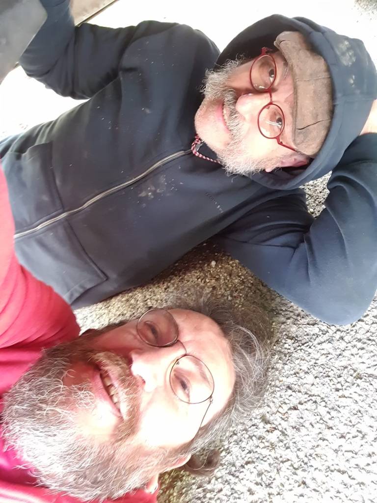 Depuis le mois de janvier, notre Patrice ce sent des aspirations électriciennes. Il a donc joyeusement décidé de changer tout seul comme un grand les feux de positions de la roulotte pour aboutir au bout de quelques jours à un blackout total, le noir complet, le néant…Fort de cette expérience, Patrice a choisi d’enfoncer le clou (oui il a aussi des aspirations charpentières), démontant l’ensemble, coupant un fil, faisant un noeud, tirant le fil jaune…pour rien ! Lors de ses retrouvailles avec Dominique, nos deux compères étudièrent pendant plusieurs jours (et même nuit) le système complet du fonctionnement électrique entre camion et roulote, à coup de shémas et autres théories fumeuses pour n’aboutir…à un peu mieux que rien.