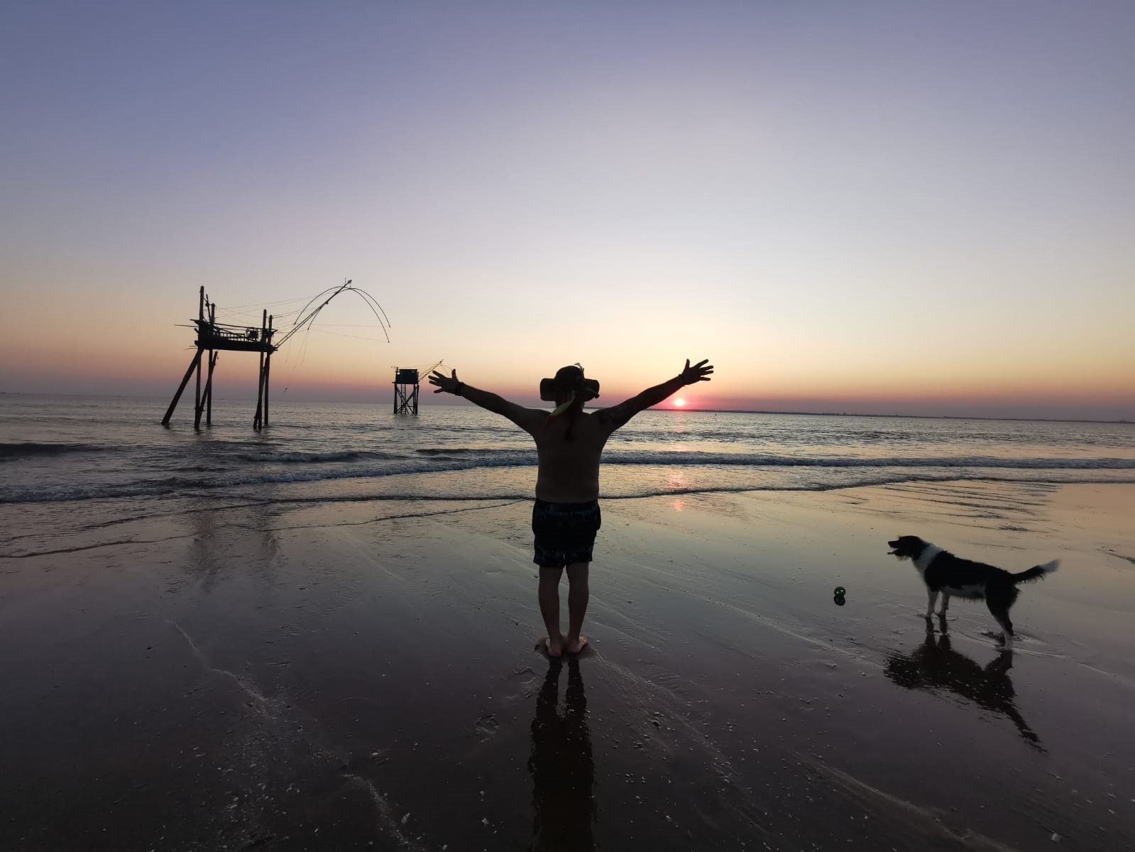 Tout commence à Eyran, lors d’une douce soirée dans le jardin de nos hôtes. Malum et son nouveau copain Youki sont partis en vadrouille à travers champs. Valérie et Philippe nous parlent de leur coin, ce morceau d’Estuaire mi fleuve mi océan où poussent les vignes, et que longe une route en corniche jonchée de maisons de pêcheurs pittoresques, c’est là au bord de la Gironde que nous vons rencontré nos premiers carrelets.