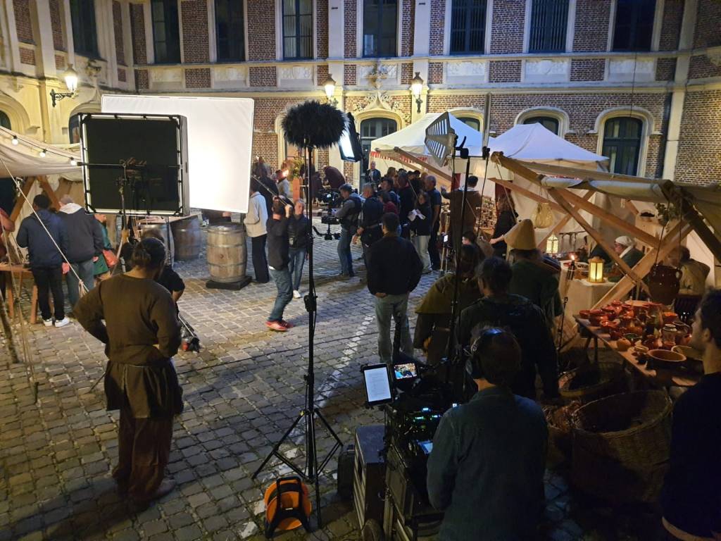 Nous avions été retenu pour participer à la fête médiévale du Beffroi de Douai et ce fut une belle découverte. Une profondeur humaine, des rencontres étonnantes et même une drôle de « caméra » qui cherchait, fouillait, ne disant mots. Retour du Nord vers le Sud afin de participer à la Fête Viking de Lisle et un message plus tard : voici le Colporteur et sa roulotte validant leur participation en tant que figurants pour une série télévisée : à Douai, au pied du Beffroi ! Comment résister à cette nouvelle aventure. Et quelle aventure : des cartes qui nous mènent sur des routes inondées, des arbres qui se promènent au milieu de la voie, des renards curieux en bordure… et j’en passe, mais rien ne nous arrêtera : le Noooord on arrive.
