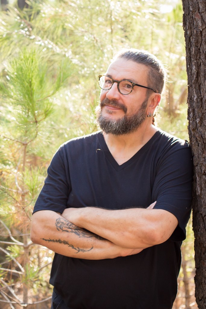 Patrice écrit, conte, raconte, invente et gesticule dans sa roulotte théâtre où depuis plus de 15 ans le libraire est devenu Colporteur de mots et raconteur d’histoires.